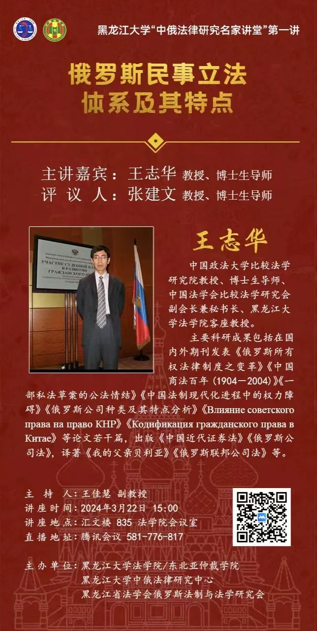耽美漫画 “中俄法律研究名家讲堂”系列讲座预告