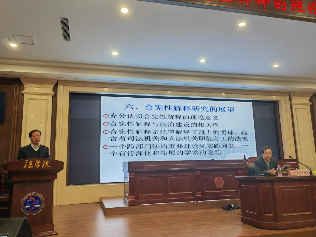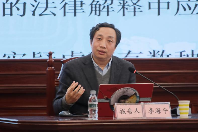 教授、博士生导师、宪法学与行政法学教研部主任、《当代法学》副主编、吉林省政府津贴专家、中国法学会宪法学研究会常务理事、海峡两岸法学交流促进会常务理事李海平教授作了题为《合宪性解释的理论争鸣与澄清》的学术报告。