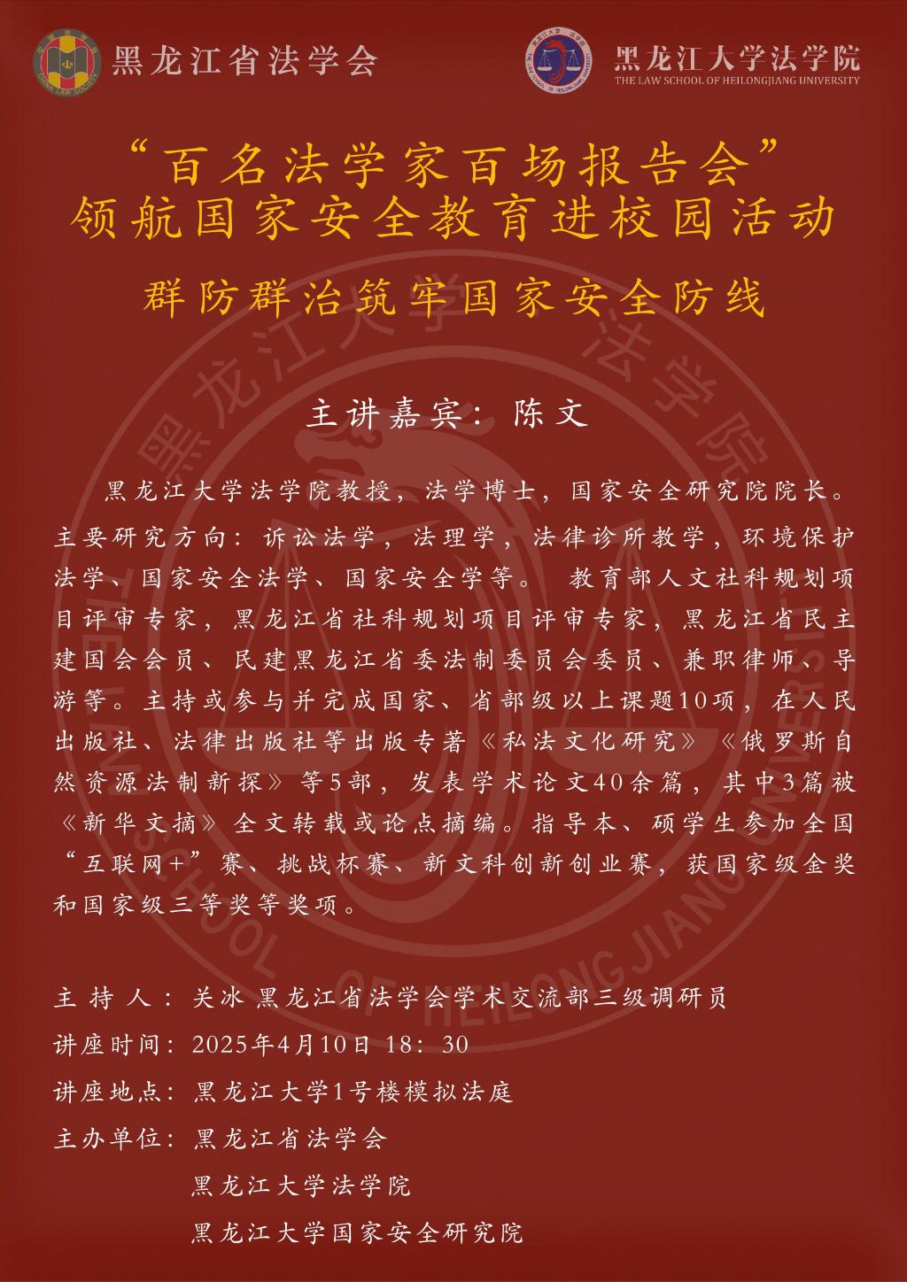 全民国家安全教育日 | 耽美漫画 举办“百名法学家百场报告会”领航国家安全教育进校园活动