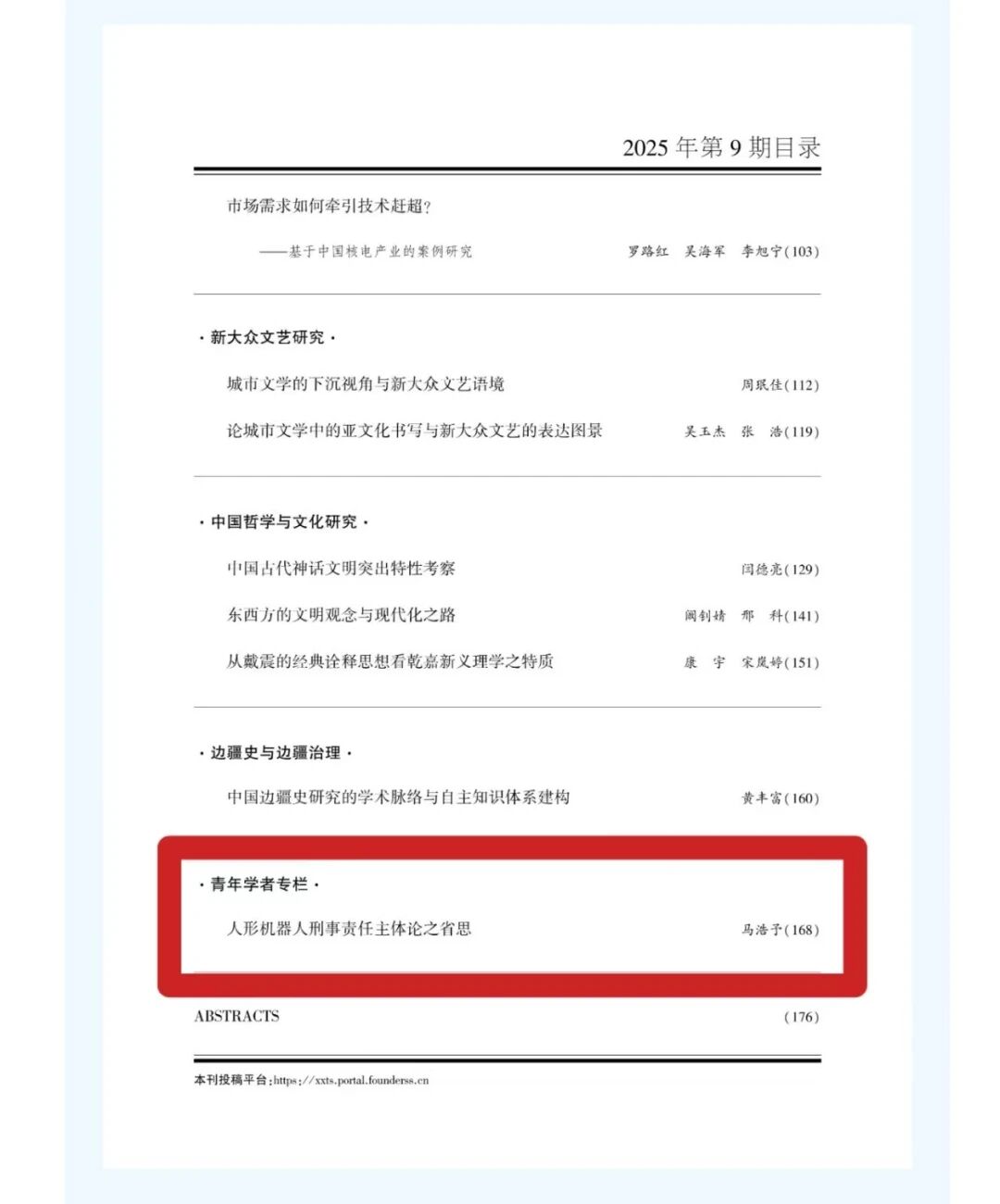 耽美漫画 马浩予老师论文《人形机器人刑事责任主体论之省思》被《学习与探索》2025年第9期收录。