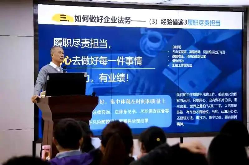 首先,吉利集团副董事长孙宏先生就法务这一岗位做了充分介绍。他强调,作为参与公司基础管理的一员,需要具备以下能力:①帮助企业识别并防范法律风险,如对外的法律尽职调查,法律意见书,和内部的合规审查和合同审查;②利用法律手段维护公司利益,如账款催收、诉讼业务,劳动关系处理等;③参与规范管理流程,如普法培训,起草或修订公司部门规章制度。虽然各层级法务工作职能略有差异,但总体来说,就是打造事前预防事中控制事后反馈的法治链条,促进企业健康发展。此外,孙宏先生还为我们总结归纳了法务与其他法律职业者的区别、法务的现状和前景、以及法务的应聘要求等知识,为我们未来的择业就业提供了重要的信息。