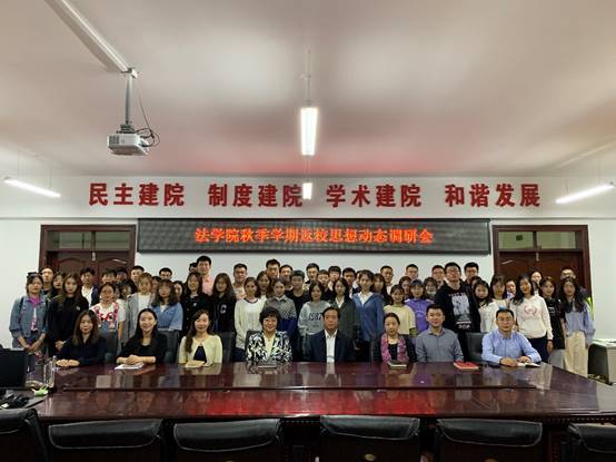 与会领导与老师充分肯定了同学们对疫情背景下国际形势、国家大事、社会热点问题及学校发展的密切关注和深入思考,赞许了同学们在疫情期间积极投身一线、投身志愿服务的奉献精神。并针对学院教学管理、学业指导、师生服务等方面进行调研征求同学们的意见和建议。特别对大家关注的法律卓越人才班的相关问题给予回复,院长哈书菊教授表示:学院正在研究和制定相关政策使学生在课程选择、实习实践等环节拥有更大的空间,进一步提升人才培养质量。党委书记胡东教授在与同学们交流时表示:同学们在努力掌握科学文化知识和专业技能的同时,更要注重加强政治学习,在学习中增长知识,锻炼品格,以真才实学服务龙江法制建设。