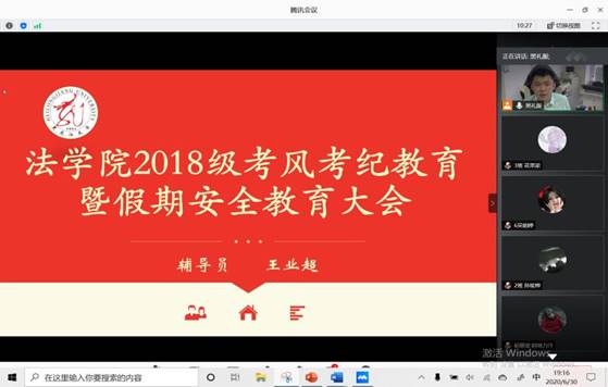 于6月26日—7月2日以年级为单位使用腾讯会议以年级大会形式召开考风考纪教育暨假期安全教育大会。