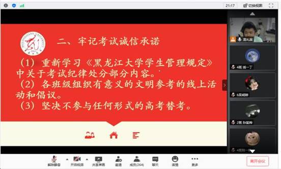 严肃考风考纪,营造良好的学风打下了坚实基础。相信全体同学都能以本次大会为契机,认真复习,积极备考,诚信参考,以优异的成绩给本学期的线上学习画上圆满句号。