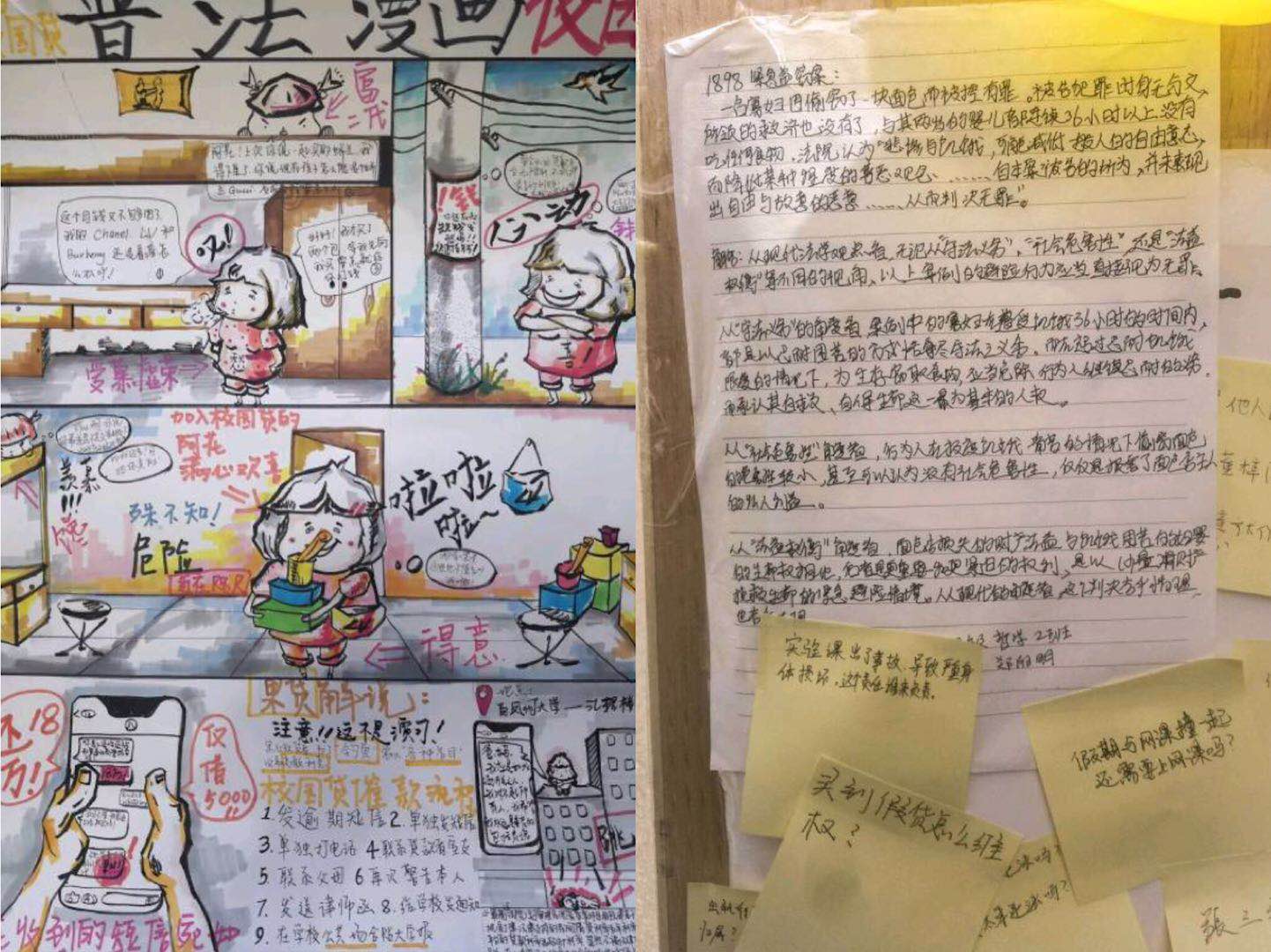 本次外展中普法漫画的主题主要包括校园贷、电信诈骗、消费者权益以及“碰瓷”四方面。志愿者们向来往的同学展示了关于这四方面的普法漫画,同时,志愿者们也通过发放普法宣传单的方式,加深同学们对于本次外展宣传的法律知识的印象。期望能够利用漫画这种艺术形式,用更新颖的方式向更多的人传递法律知识。