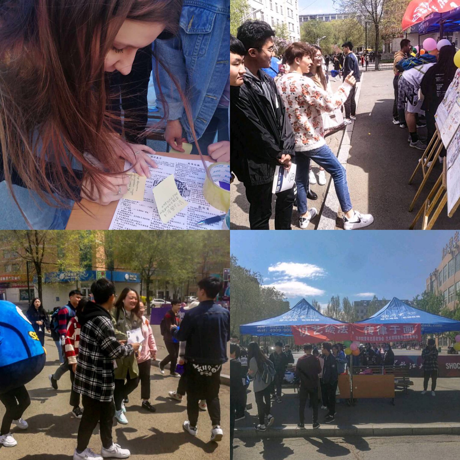 青年志愿者协会与艺术学院青年志愿者协会于5月6日在B区篮球场举办“以艺绘法,传律于画”联合外展。