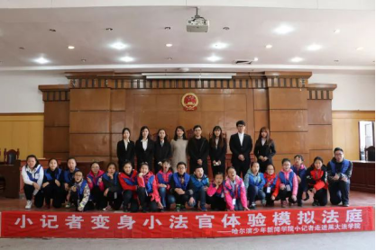 为响应国家“七五普法”号召,扎实推进“两学一做”学习教育常态化制度化,将法律知识学以致用,帮助未成年人树立法律意识,2018年3月24 日上午9时,“小记者变身小法官体验模拟法庭暨中国人民大学哈尔滨少年新闻学院小记者走进黑大耽美漫画