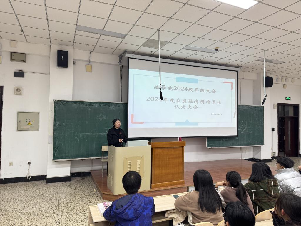于2024年10月11日20时在汇文楼120教室召开2024级家庭经济困难认定工作政策解读会。本次会议由2024级辅导员张婧主持,2024级全体学生参会。