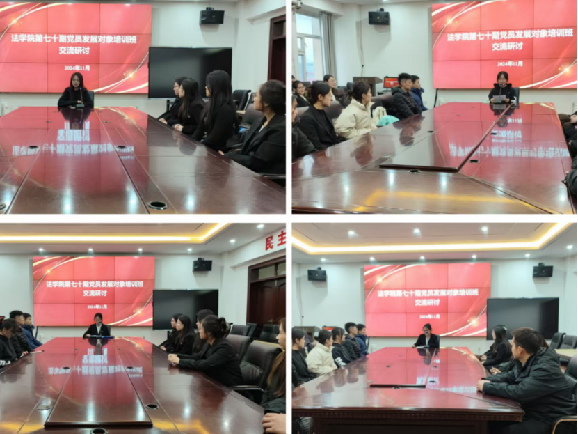 11月6日下午,党员发展对象在汇文楼835会议室围绕“新时代青年如何做推进中国式现代化的先锋力量”这一主题,并结合本次培训内容进行了交流研讨,通过谈体会、说感悟,不断激发学习热情和政治热情。学员们纷纷表示,要以本次培训为起点,以更高的标准、更严的要求、更实的作风,积极投身实践中去,为争取早日成为一名共产党员而不懈努力奋斗。