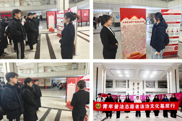 于汇文楼一楼举办宪法日主题宣传展览,志愿者们通过摆放宣传展板、向学生讲解宪法知识、发放法治宣传资料等形式,积极弘扬宪法精神,引导广大师生树立自觉守法、遇事找法、解决问题靠法的法治观念,营造了“学法、知法、守法、用法”的浓厚学习氛围。
