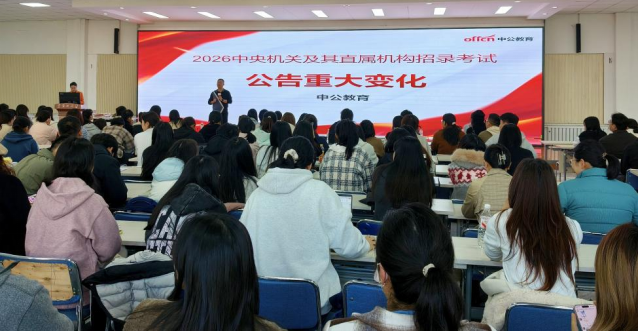 张岩芳老师首先带领同学们速览了2026年度国考公告要点,包括招录人数、报考年龄、政治素养考察等。她还梳理了报名、资格审查、准考证打印及笔试等关键时间节点,提醒同学们把握报考节奏。此外,张老师详细分析了行政职业能力测验与申论的备考重点及学习方法。最后,她重点分享了科学有效的选岗策略,并进行个性化答疑,现场指导学生如何匹配岗位以提升上岸几率。现场气氛热烈,同学们纷纷表示在本次讲座中收获颇丰。