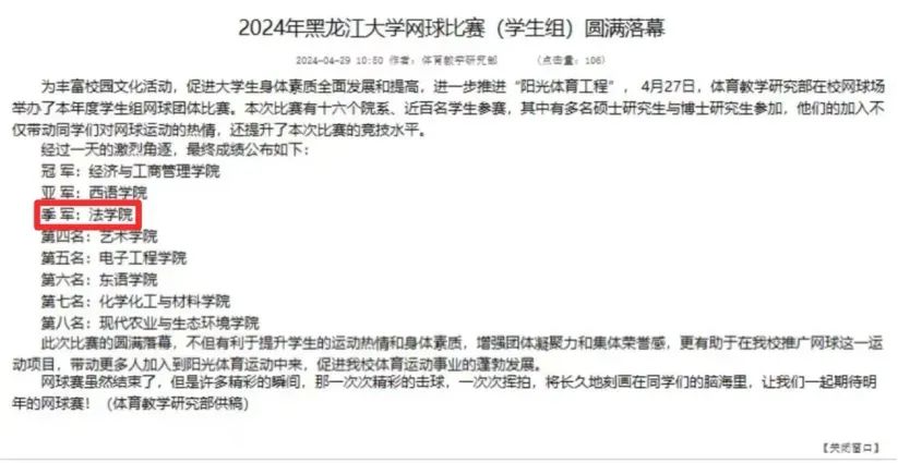 网球队与其他院网球队分组循环进行比赛,凭借较高的竞赛积分脱颖而出,进入四强角逐。队员们不畏强敌,勇往直前,在关键的一局中顽强拼搏,稳中求胜,取得了第三名的优异成绩。