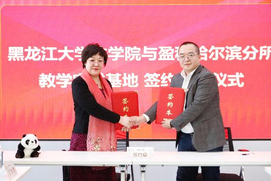 与盈科哈尔滨所签订了建设教学实践基地协议,并为基地进行揭牌。
