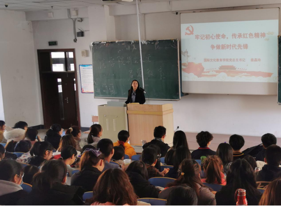 于11月4日14时在汇文楼180教室荣邀国际文化教育学院姜晶玲书记为2020级全体新生开展了一次别开生面的入党启蒙教育。
