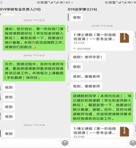 三是督导助学,平稳推进。课程结束以后,学院对教师授课情况及课程内容进行认真审查,做好线上授课质量、监督检查和跟踪评估。通过教学反馈来看,线上课堂出勤率高、学习氛围浓、教学质量好,师生之间教与学双向积极互动,直播中切磋问答,通过QQ群、微信群、腾讯会议、钉钉课堂群等不同平台进行广泛地交流,确保特殊时期防疫、教学两不误。同学们纷纷表示疫情当下,作为法学学子能做的就是要加倍努力学习,做到早日成才,报效祖国。