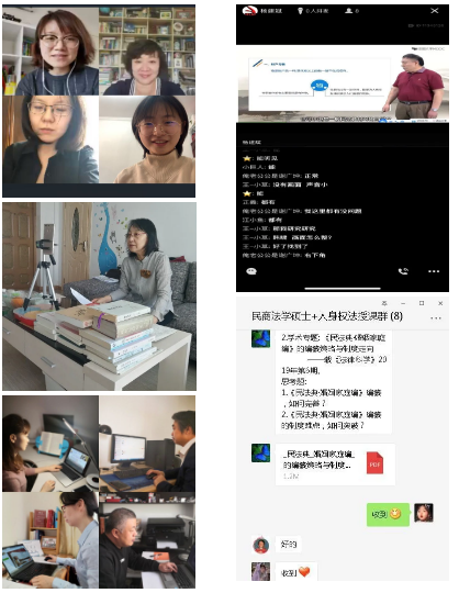 二是精心教学,育人有方。线上教学需要大量的前期准备工作,对比课堂教学要有完全不同的教学设计、丰富的音视频资料、网络设备和环境的支撑等。这给文科背景浓厚的学院教师带来了较大的挑战,学院积极组织开展线上培训,就如何建立课程、发布通知资料、录制课程等细节进行了深入交流和探讨。老师们通过多种线上平台和直播软件认真制定了自己的课程计划、应急预案等,多渠道与同学们进行交流,及时进行学业指导和课程解答。研究生各位授课导师快速响应,克服疫情时期的课堂考勤不便、线上教学模式生疏等各种困难。以法律史专业孙光妍老师为代表的教授们,主动参与、学习线上教学新模式,优化调整授课思路和内容,不断探索并丰富完善自身教学特点。