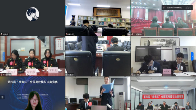 “淮海杯”全国高校模拟法庭竞赛是中国法学会法学教育研究会模拟法庭专业委员会和江苏师范大学共同创办的年度专业赛事,也是模拟法庭专业委员会支持创办的唯一模拟法庭赛事。本届赛事共吸引全国25个省、自治区、直辖市53所高校报名,经组委会层层筛选,最终确定24支代理人队伍和8支法官队伍共104人参赛。本届赛事采取线上线下相结合的方式进行,其中比赛为线上方式,评委集中线下评审。