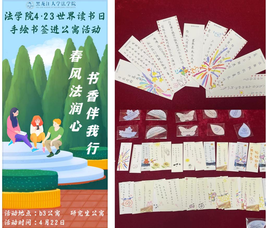 党委副书记董捷,学院全体辅导员,深入研究生公寓、子衿园3号公寓与同学们共同参与“春风法润心,书香伴我行”手绘书签心理育人主题活动。