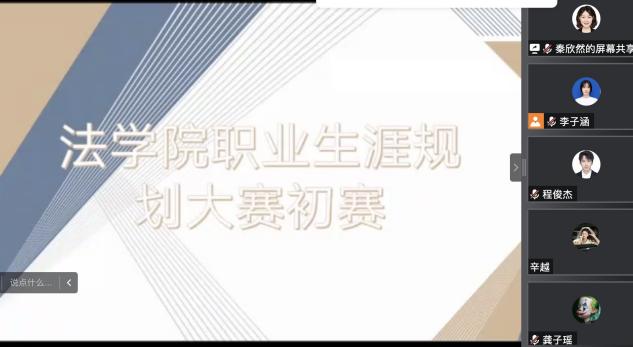 本次比赛共收到成长赛道、就业赛道共40余名选手报名参加,学院初赛采用线上会议的方式进行。比赛过程中,评委首先对参赛选手提交的简历进行现场评审,随后由选手做三分钟的自我陈述。比赛过程中各位选手展示了个人职业兴趣测评数据,对自身优势与劣势进行了深度刨析,同时就个人职业方向进行深度解读,针对个人目标制定了近期及较长久的计划,并根据实际情况随时调整。经过紧张激烈的比赛,学院共遴选8名成长赛道选手,1名就业赛道选手参加校级复赛。