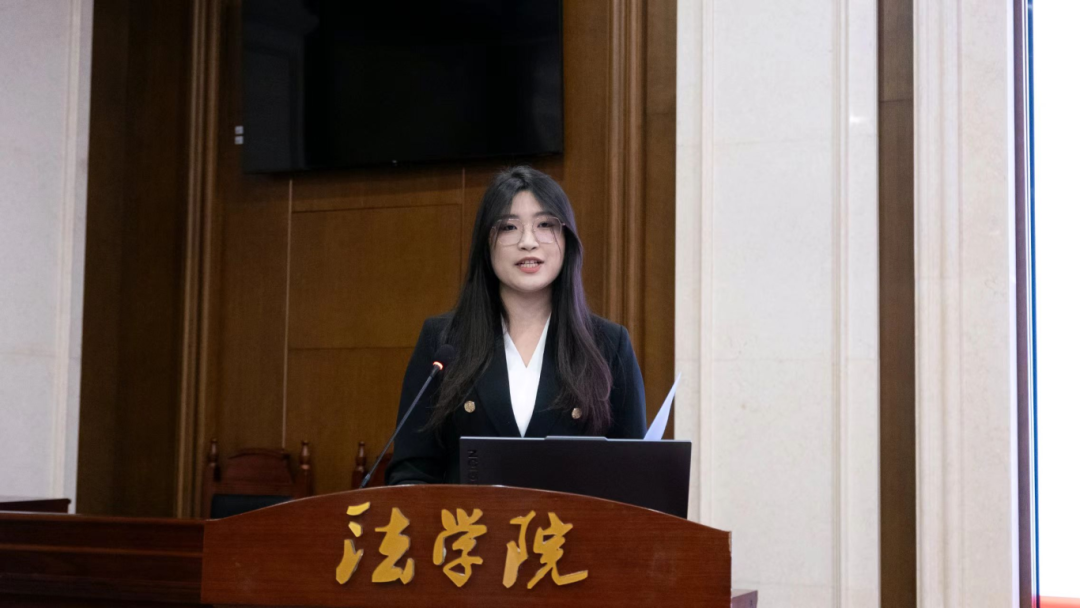 第一位宣讲人李雨桐阐述了法治建设在推进中国式现代化进程中的里程碑意义。她勉励青年学子,要筑牢理论之基,深学细悟习近平法治思想,为同学们把握法治建设方向,明确自身责任提供了清晰指引。