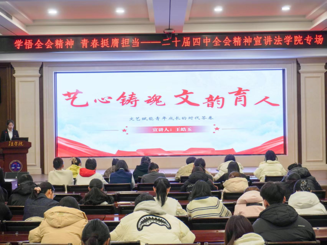 第四位主讲人王皓玉讲解了“十五五”时期发展社会主义文化的战略任务,探讨了优秀文艺作品在“举旗帜、育新人”的独特价值。她号召青年学子以“研学之诚、悟理之深、融创之智、践行之笃”,在文化自信中彰显青年担当。