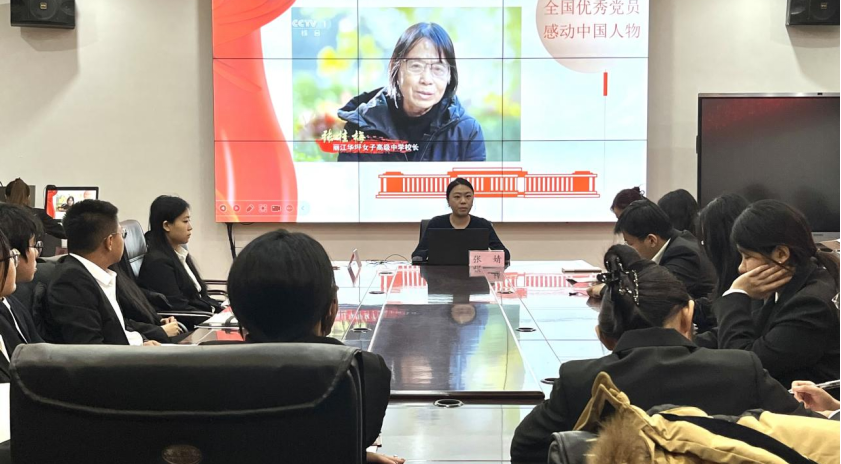 团委副书记张婧老师以“学习身边榜样,以担当践行初心使命”为题,通过介绍“时代楷模”张桂梅的先进事迹,让同学们深切感受到以张桂梅同志为代表的优秀共产党员坚守初心、对党忠诚的崇高品格,执着奋斗、无私奉献的至诚情怀,并鼓励学生党员们向张桂梅同志学习,做新时代“四有”好青年。